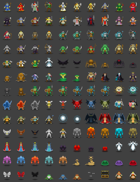 The ultimate collection of fantasy sprites. Wizards, warriors, goblins, bats, skeletons, zombies, dragons and more! Inspired by classic console and computer RPG games of the past.